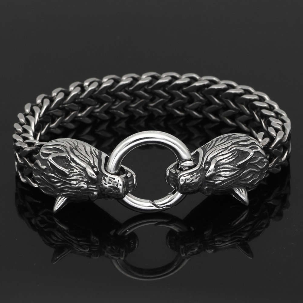 Viking Bracelet Wolf Head Collar Stainless Steel Men's Bracelet