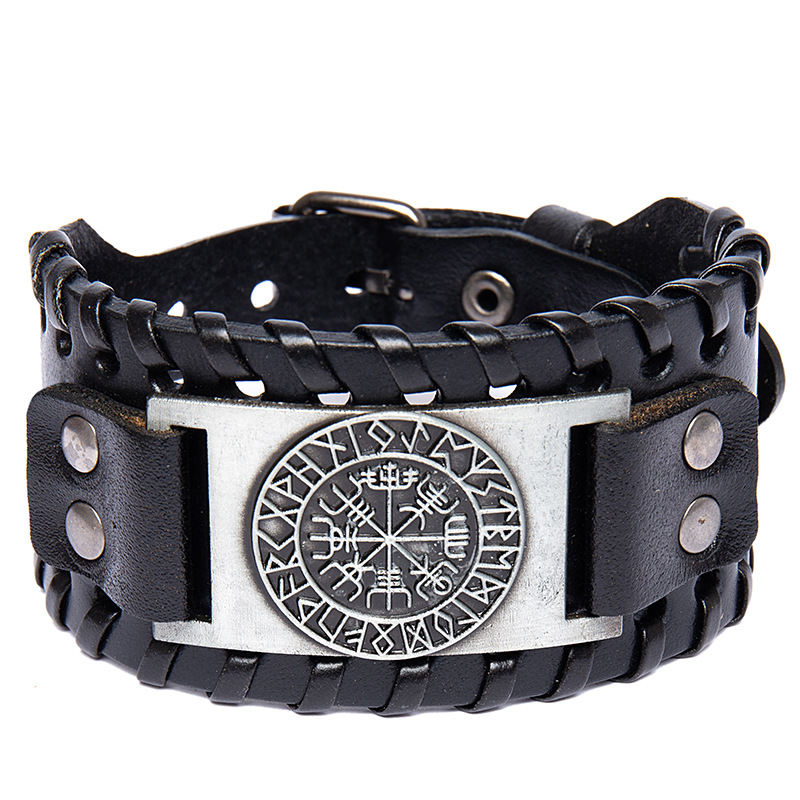 Viking Pirate Compass Pattern Leather Bracelet