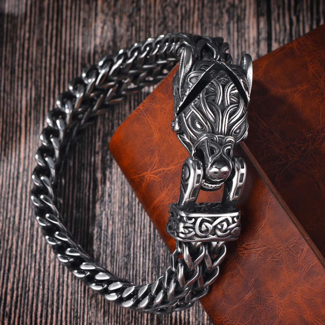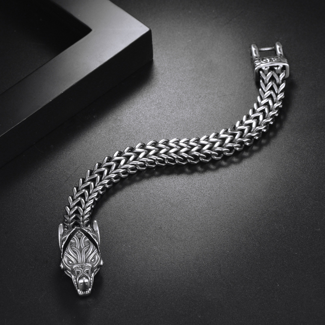 Fade-resistant Bracelet with Retro and Personalized Viking Wolf Head Design