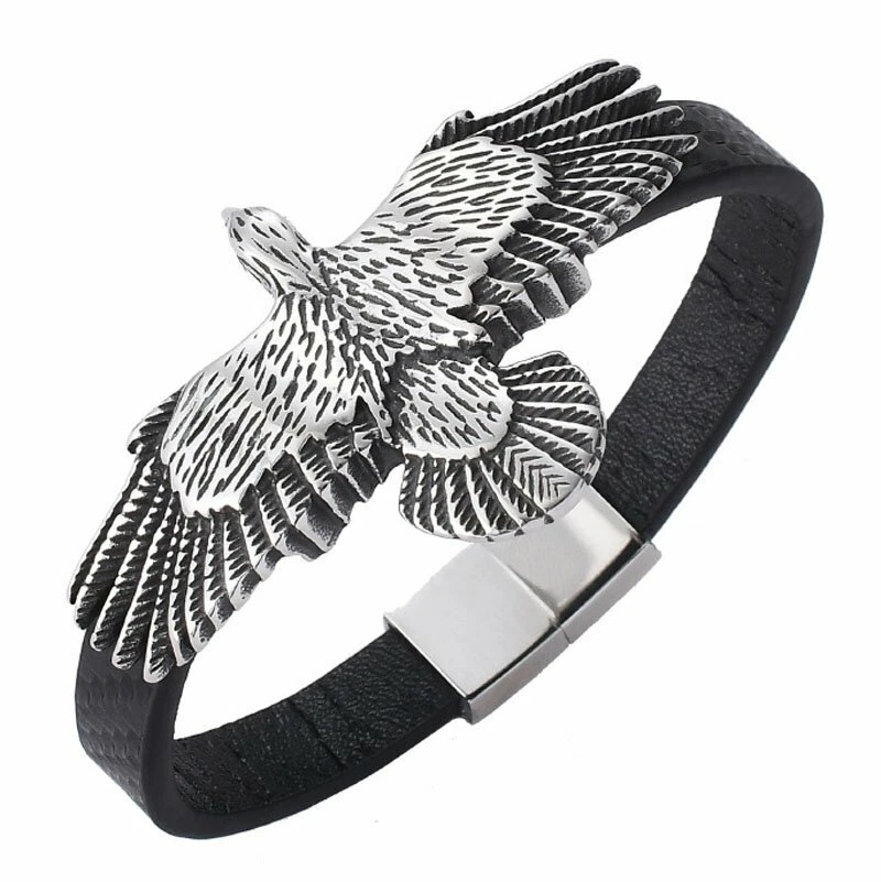 Leather Winged Eagle Stainless Steel Bracelet: Embodying Freedom and Strength