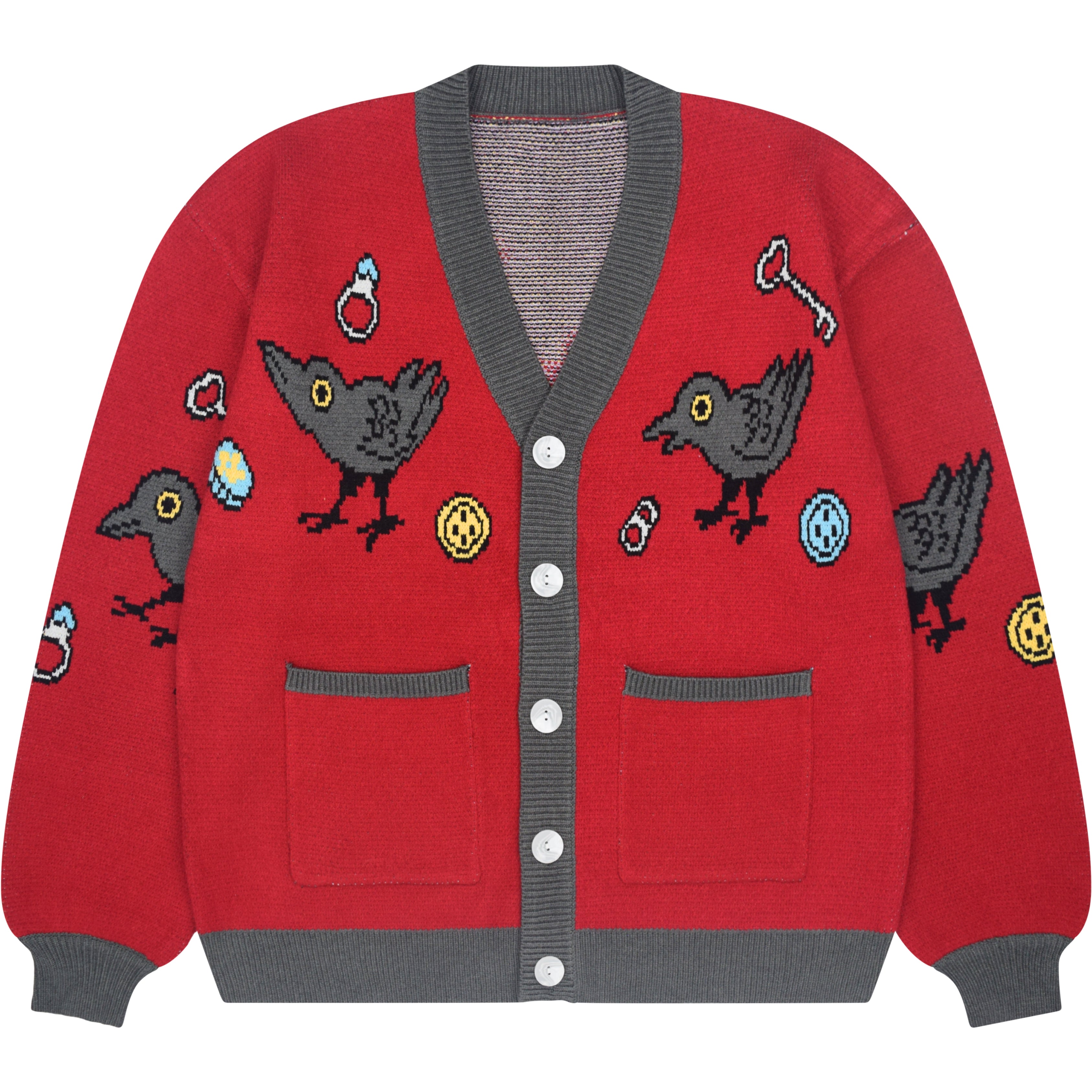 Men's Retro Frog Print Casual Knit Crew Neck Sweater