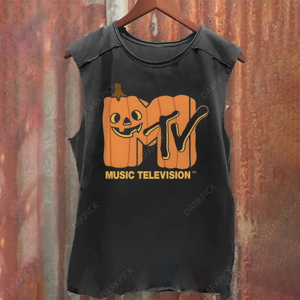 MTV Music Television Halloween Jack-o'-lantern Logo Washed Tank Top