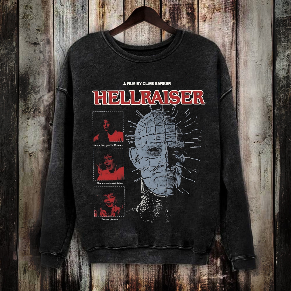 Unisex Vintage Washed Hellraiser Horror Movie Sweatshirt