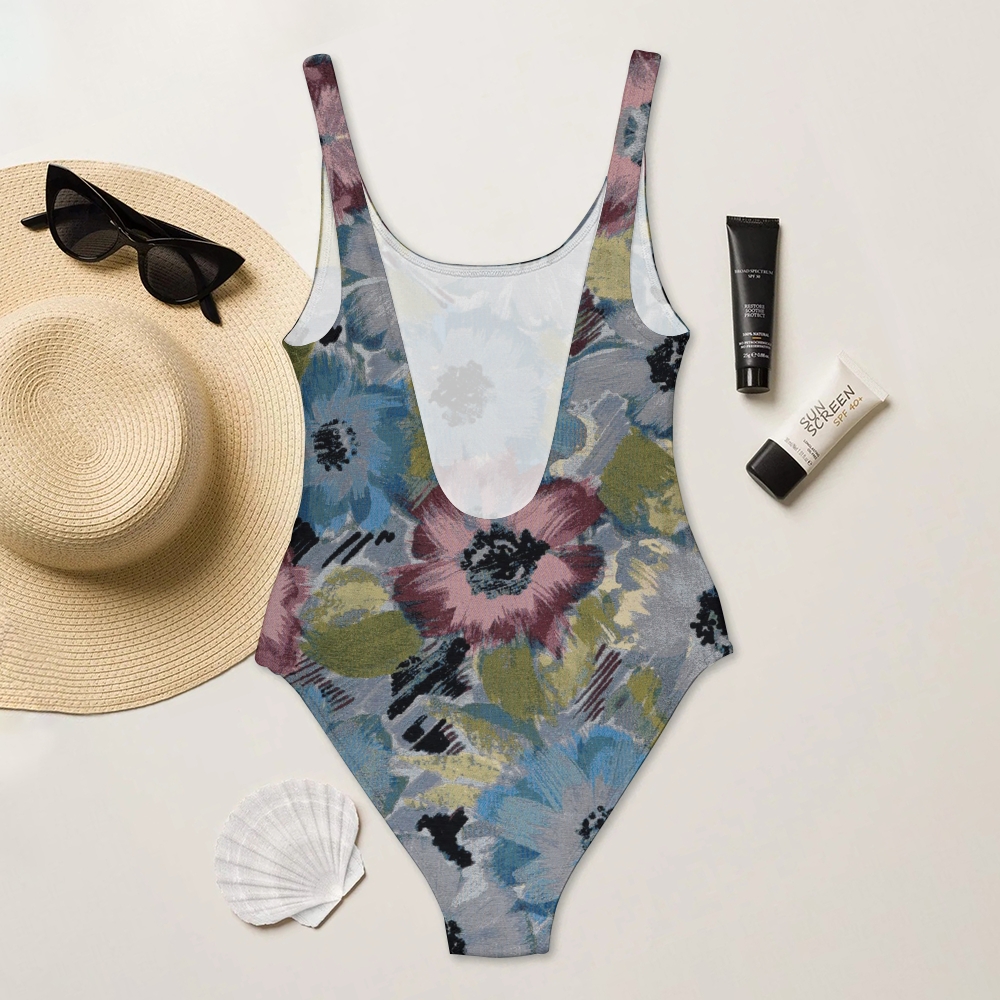 Colorful Bloom Deep U-Back One-Piece Swimsuit