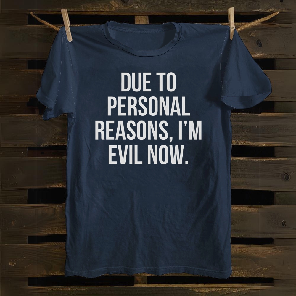 DUE TO PERSONAL REASONS, I'M EVIL NOW cotton T-shirt