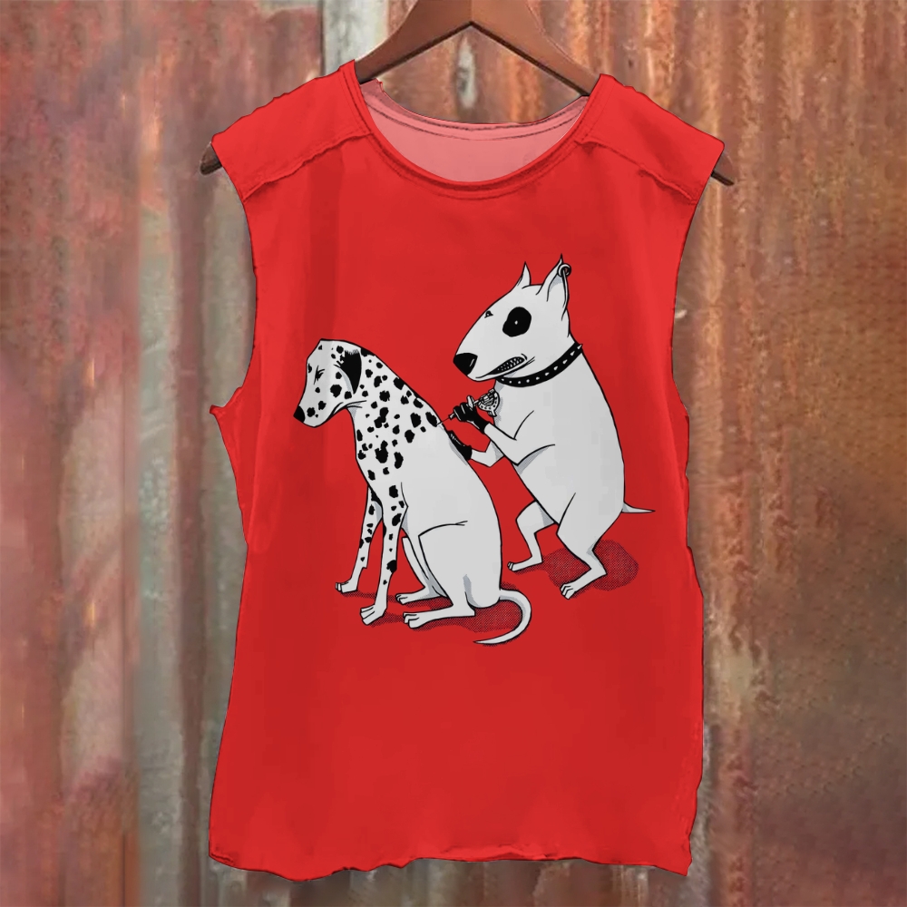 Funny Dalmatian Tattoo Quirky Bull Terrier Unisex Casual Printed Tank Top