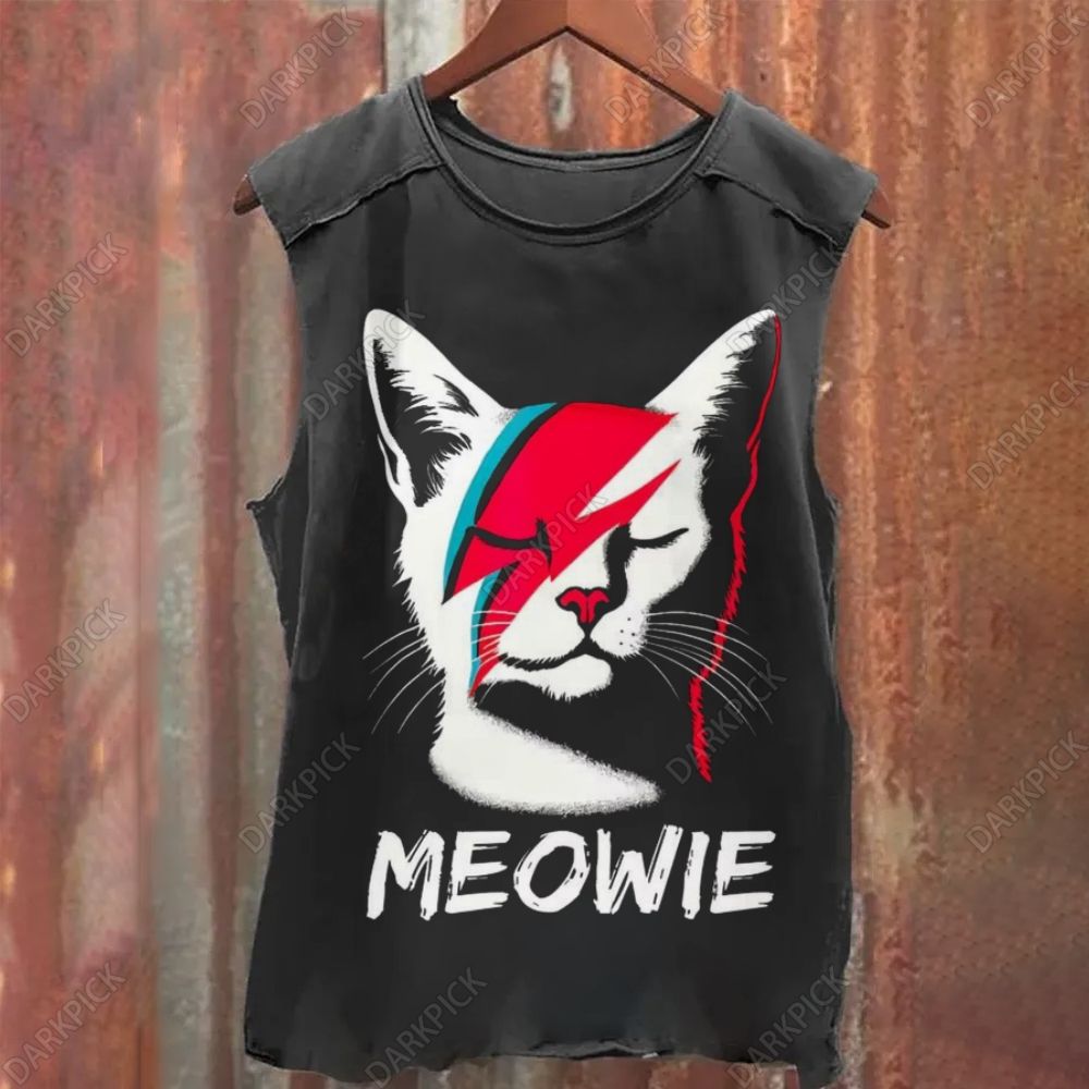 Unisex Vintage Washed Octopus And Black Cat Print Tank Top