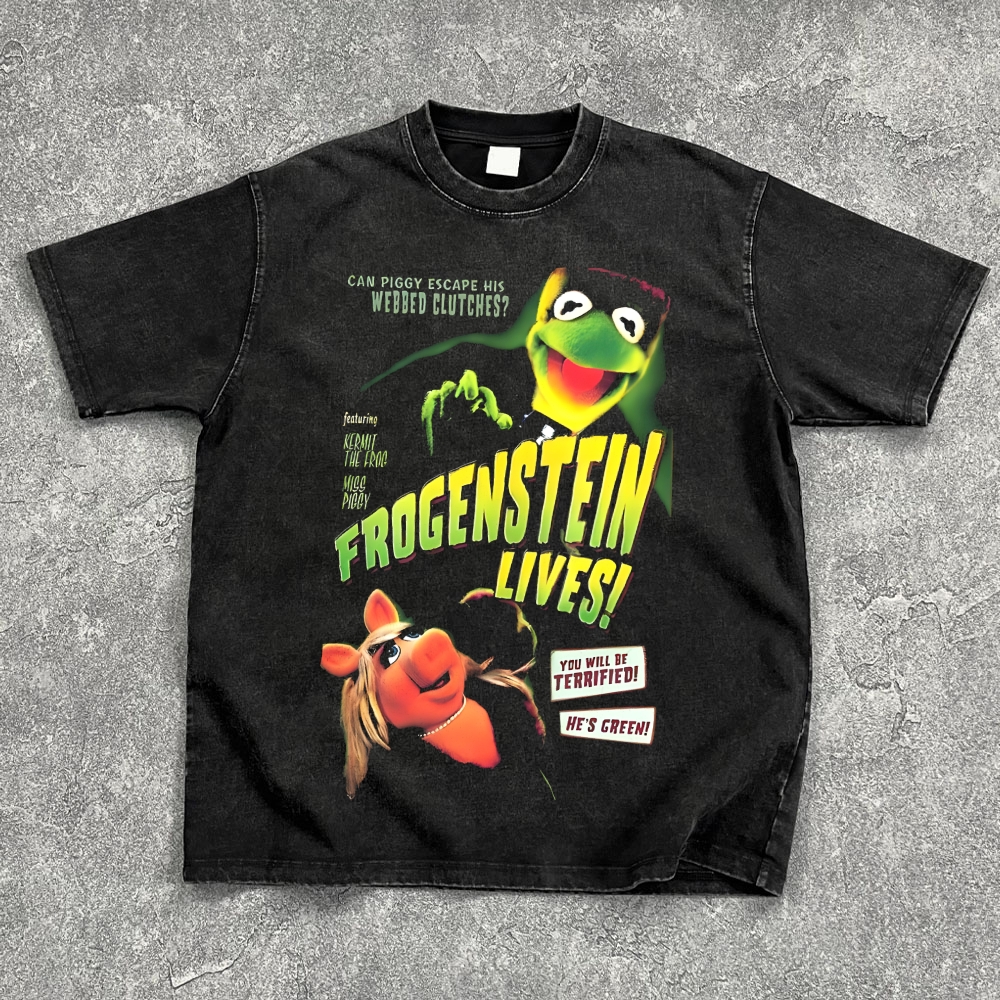 Kermit the Frog as "Frogenstein" and Miss Piggy Washed Oversize T-Shirt