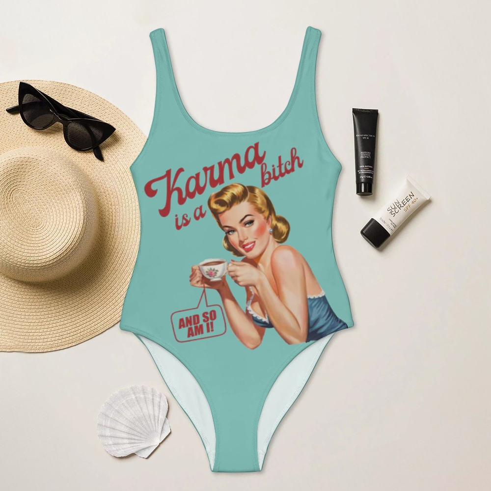Karma Is A Bitch Deep U-Back One-Piece Swimsuit