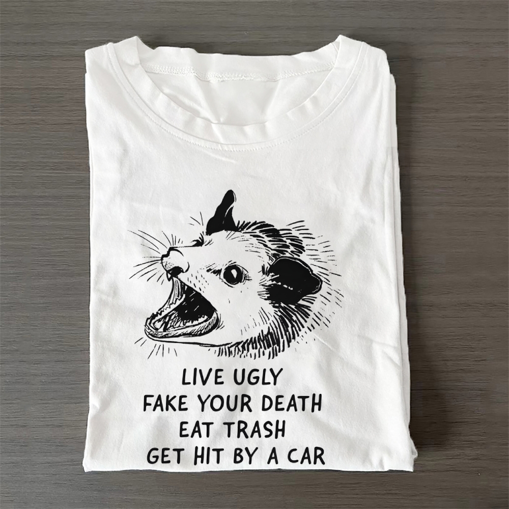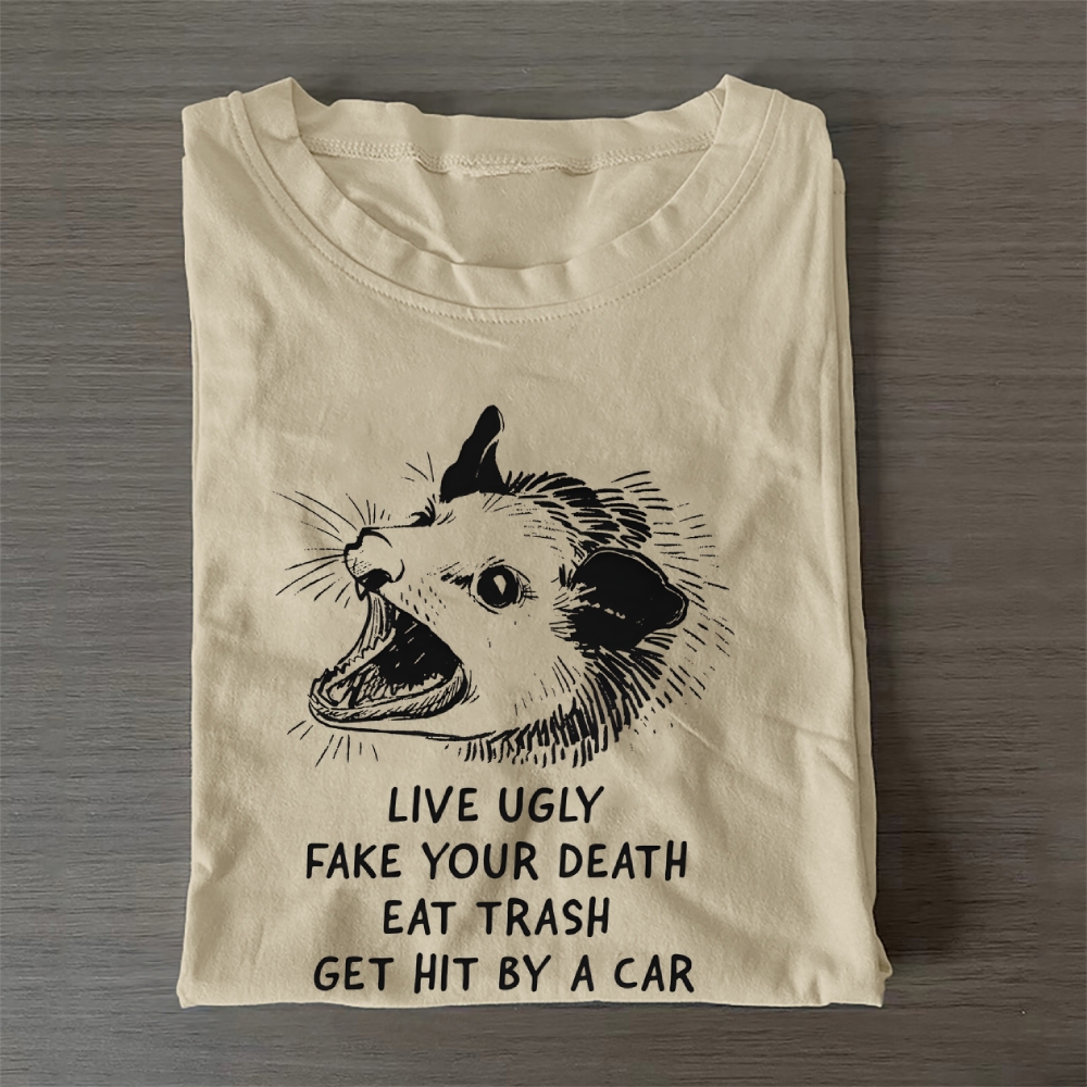 Live Ugly, Fake Your Death, Eat Trash, Get Hit By A Car Casual Cotton T-Shirt