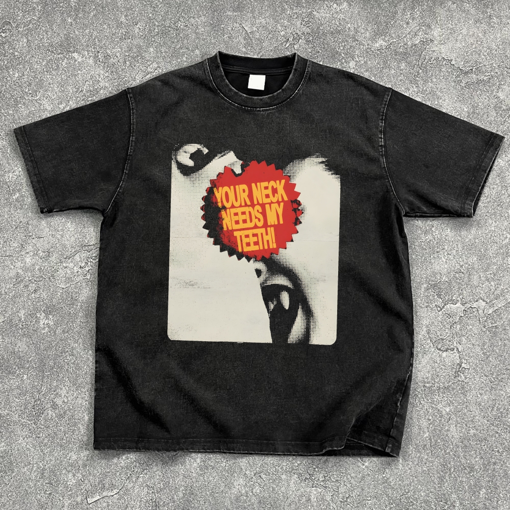 YOUR NECK NEEDS MY TEETH gothic graphic Washed Oversize T-Shirt