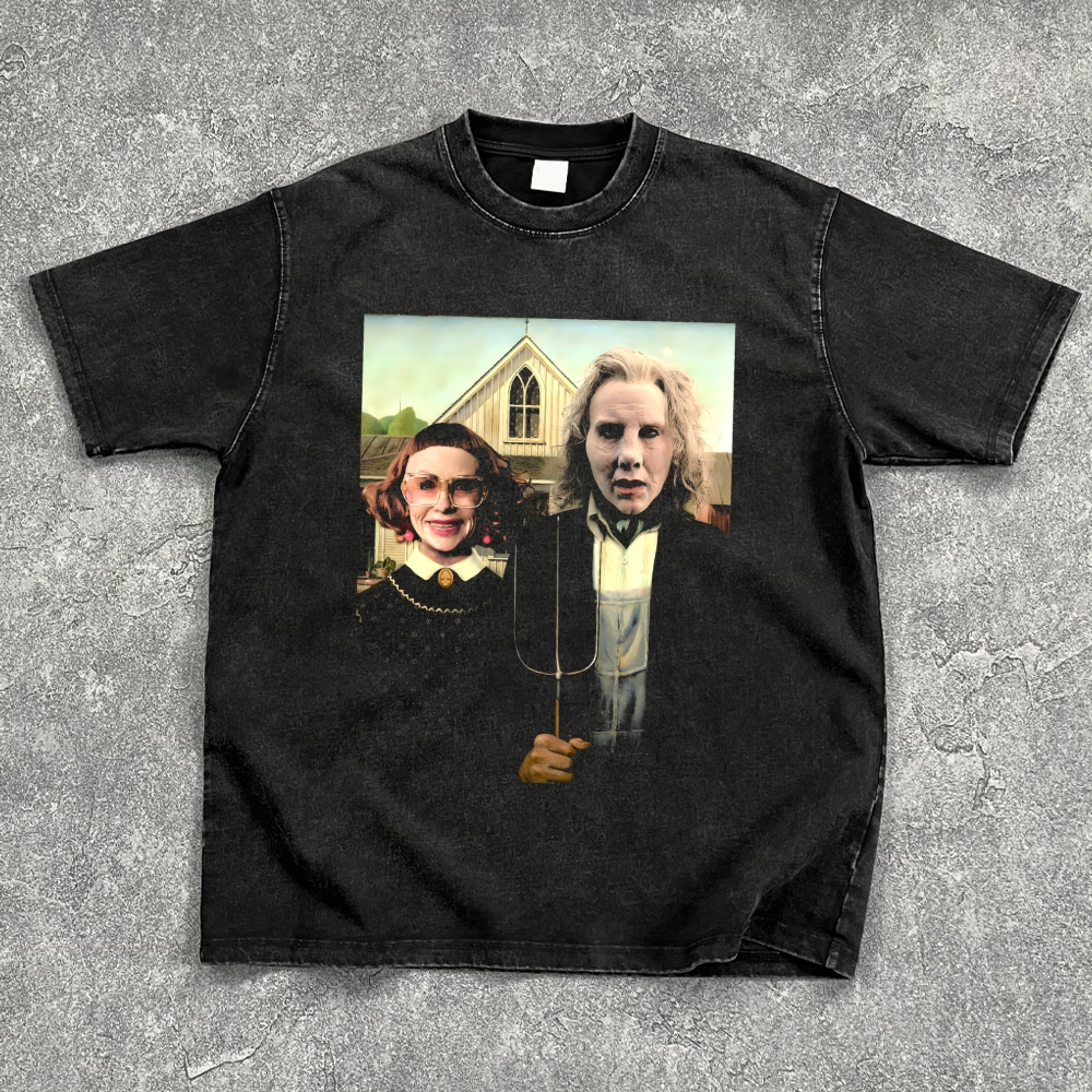 Aunt Gladys and Longlegs gothic art Washed Oversize T-Shirt