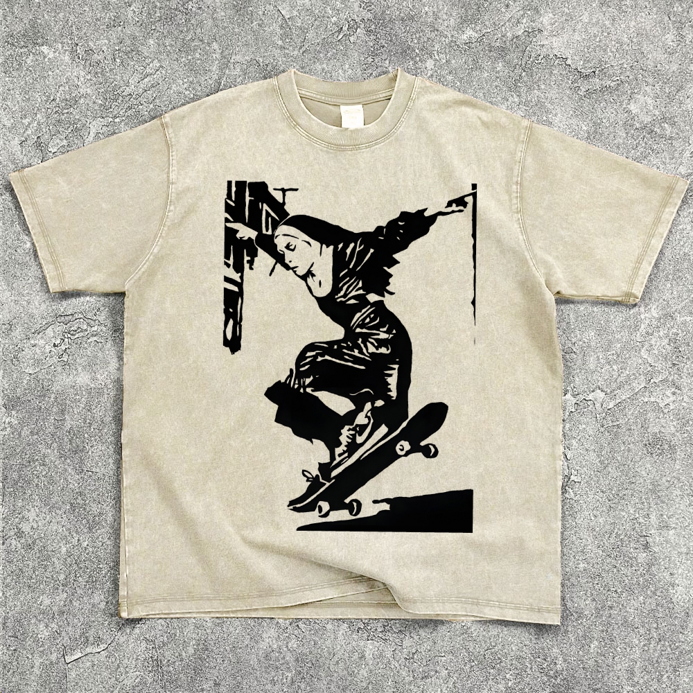 The Milkmaid Punk street art Washed Oversize T-Shirt