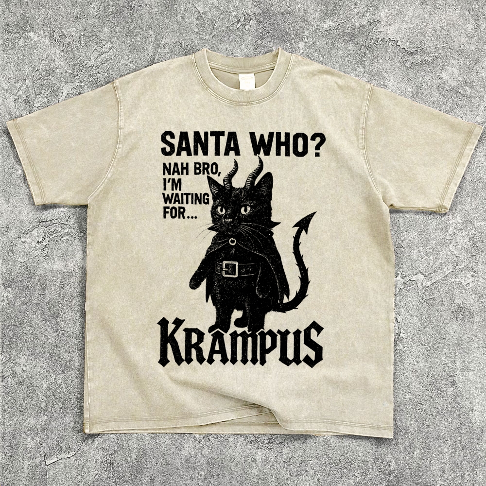Santa Who? Nah Bro, I'm Waiting for Krampus Washed Oversize T-Shirt