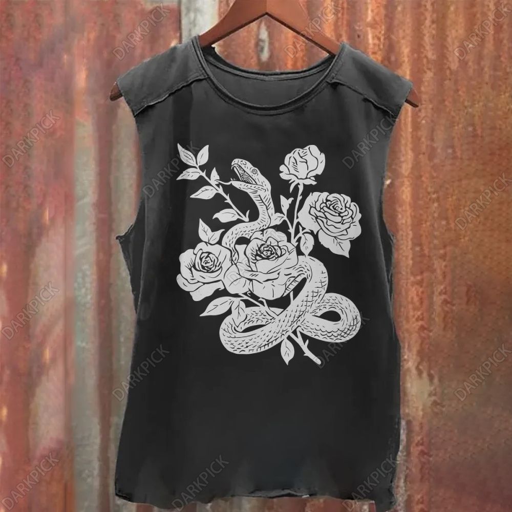 Snake entwined with flowers Vintage Washed Tank Top