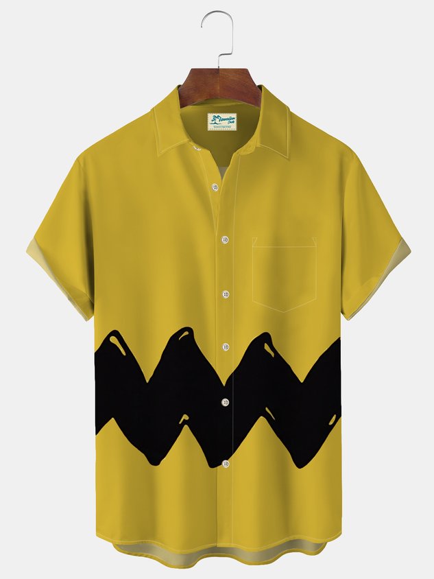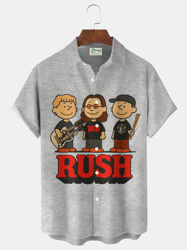 Royaura® Musical cartoon print men's button pocket short-sleeved shirt Big & Tall