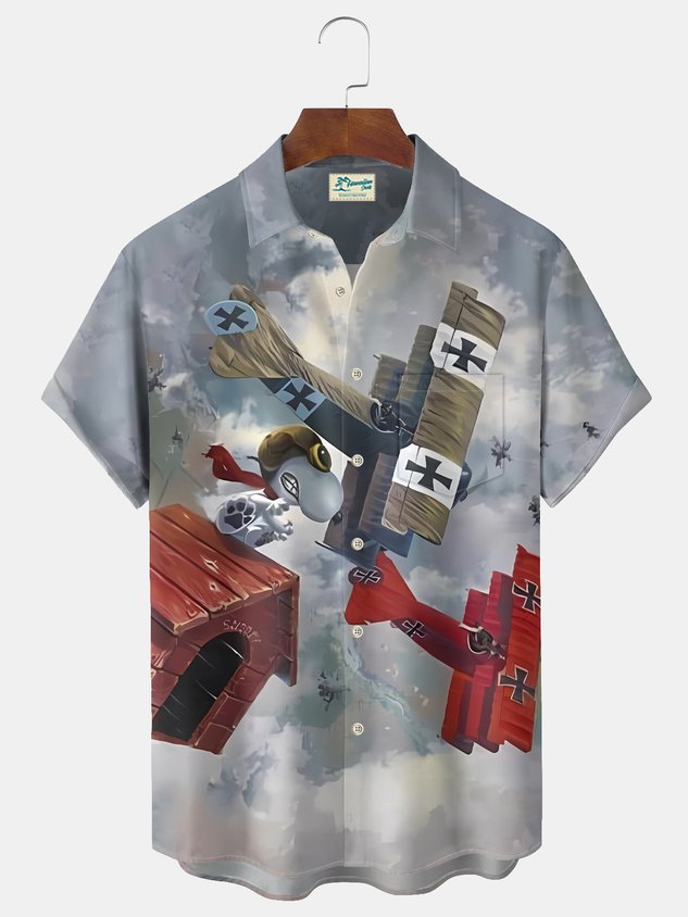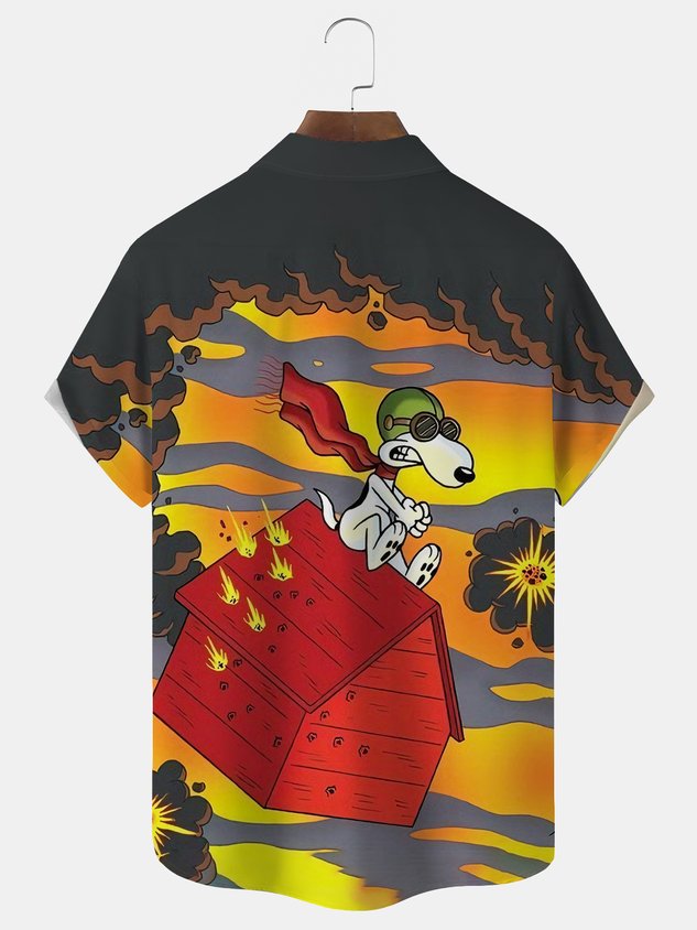 Royaura® Cartoon Print Men's Button Pocket Short-Sleeve Shirt Big & Tall