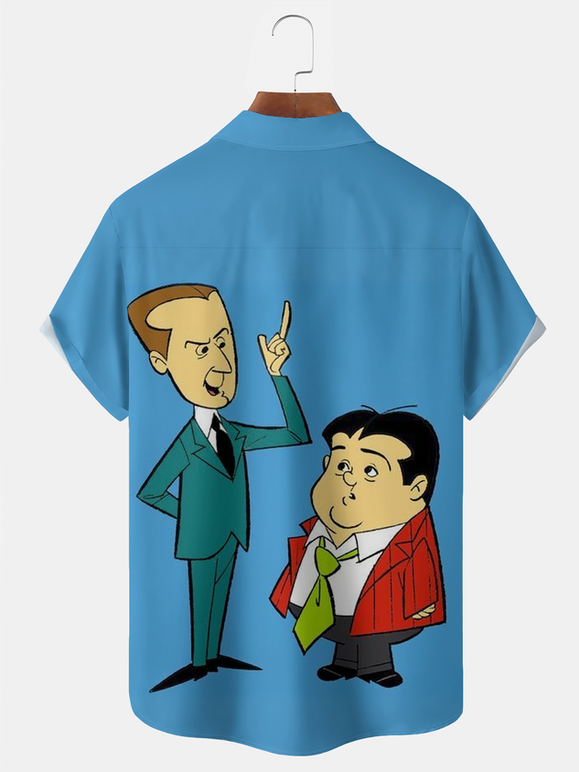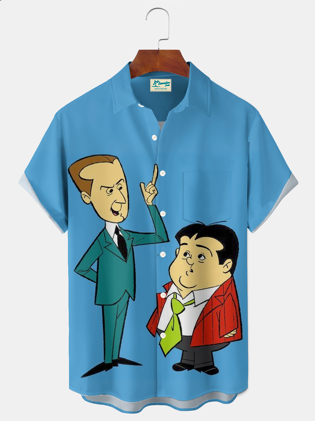 Royaura® Vintage Cartoon Comics Graphic Print Men's Button Pocket Short Sleeve Shirt Big & Tall
