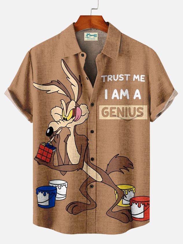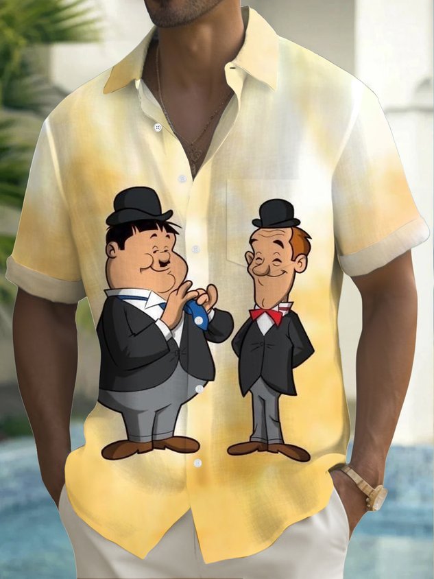 Royaura® Vintage Cartoon Print Men's Casual Stylish Button Pocket Hawaiian Summer Shirts Short Sleeve Shirt Big Tall