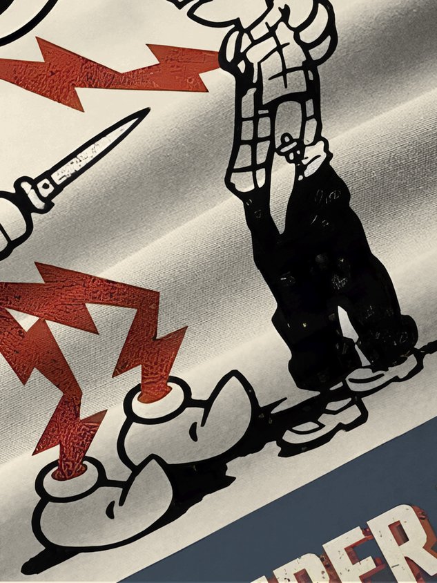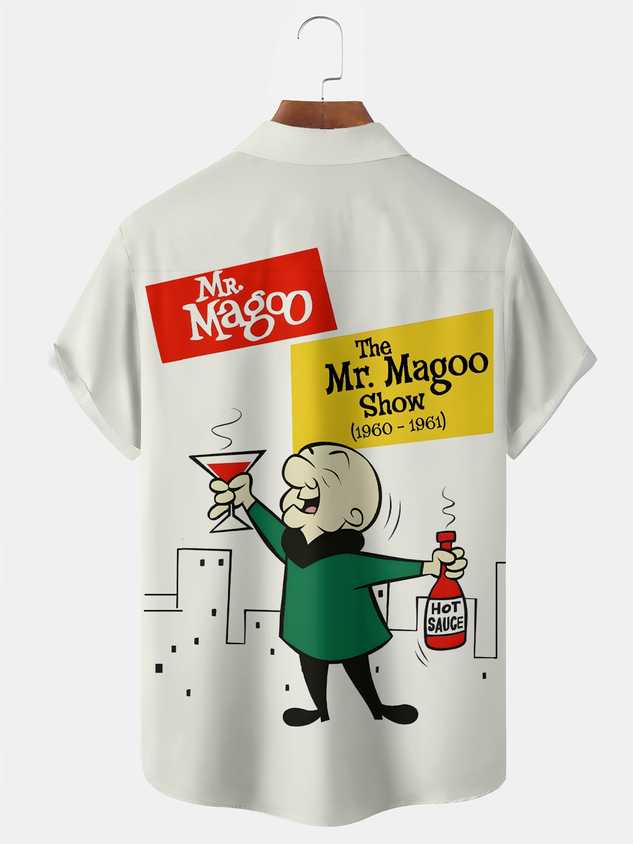 Royaura® Vintage Warning Cartoon Print Men's Chest Pocket Stretch Shirt Big Tall