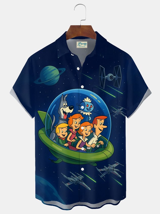 Royaura® Vintage Cartoon Space Print Men's Button Pocket Short-Sleeve Shirt Shirt Big & Tall