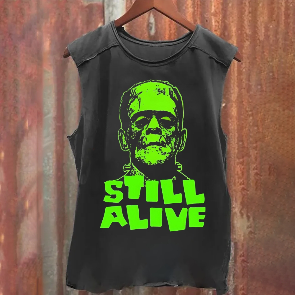 Unisex Vintage Washed Frankenstein Monster Still Alive Tank Top