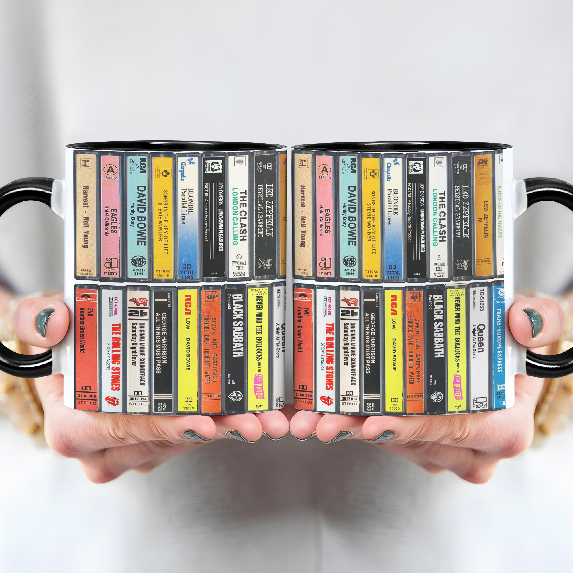 70s Music Albums Cassette Collection Retro Accent Edge-to-Edge Printed Mug