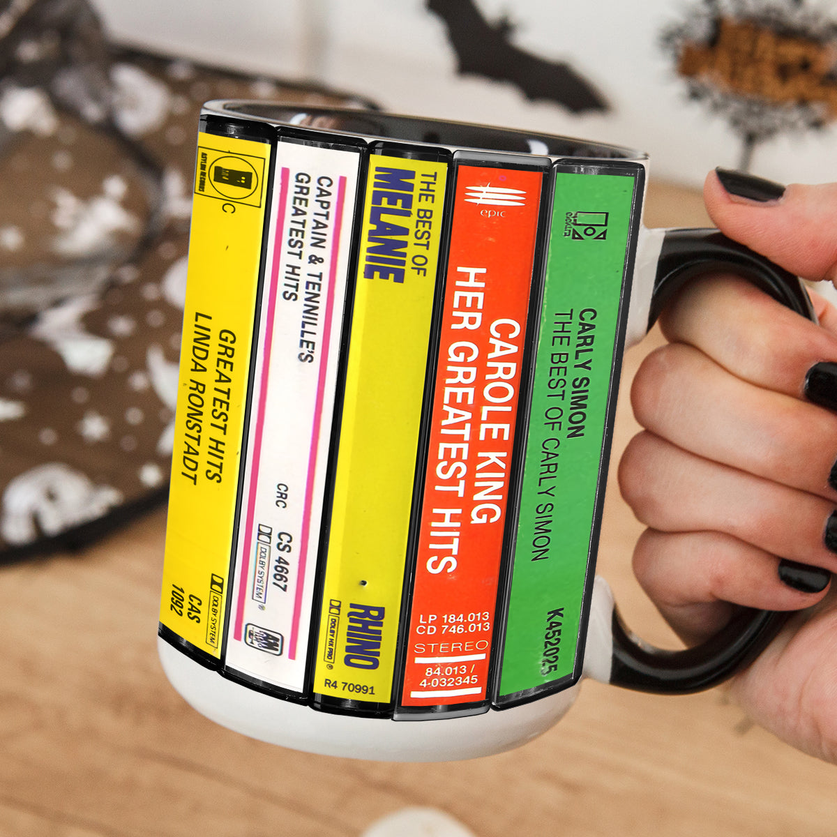 70's Female Voices Albums Cassette Collection Retro Accent Edge-to-Edge Printed Mug