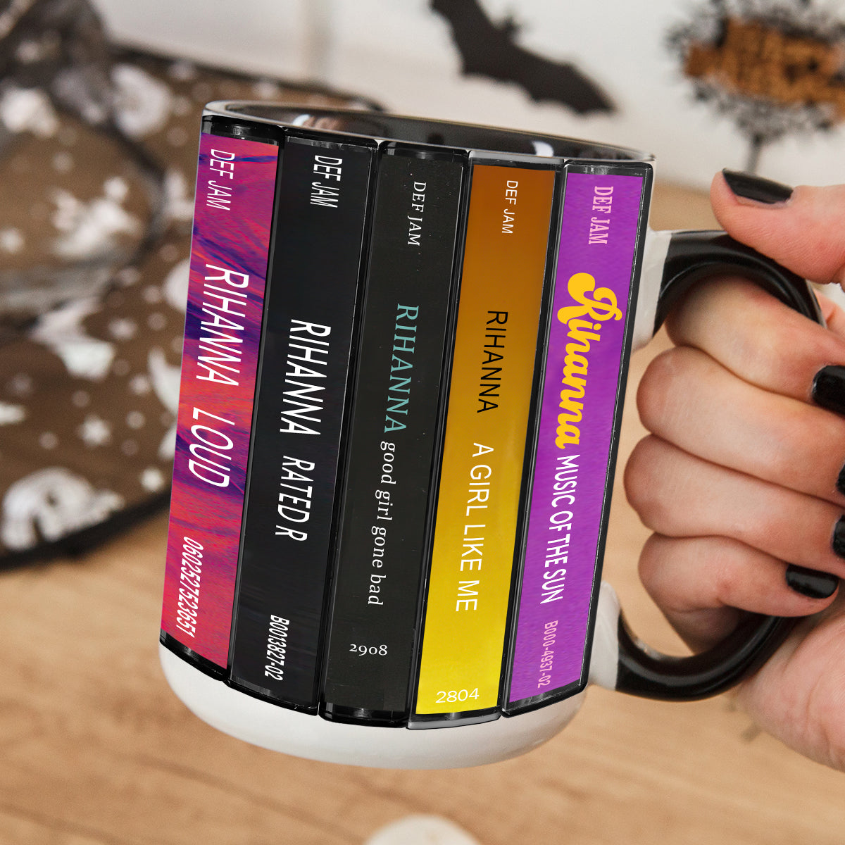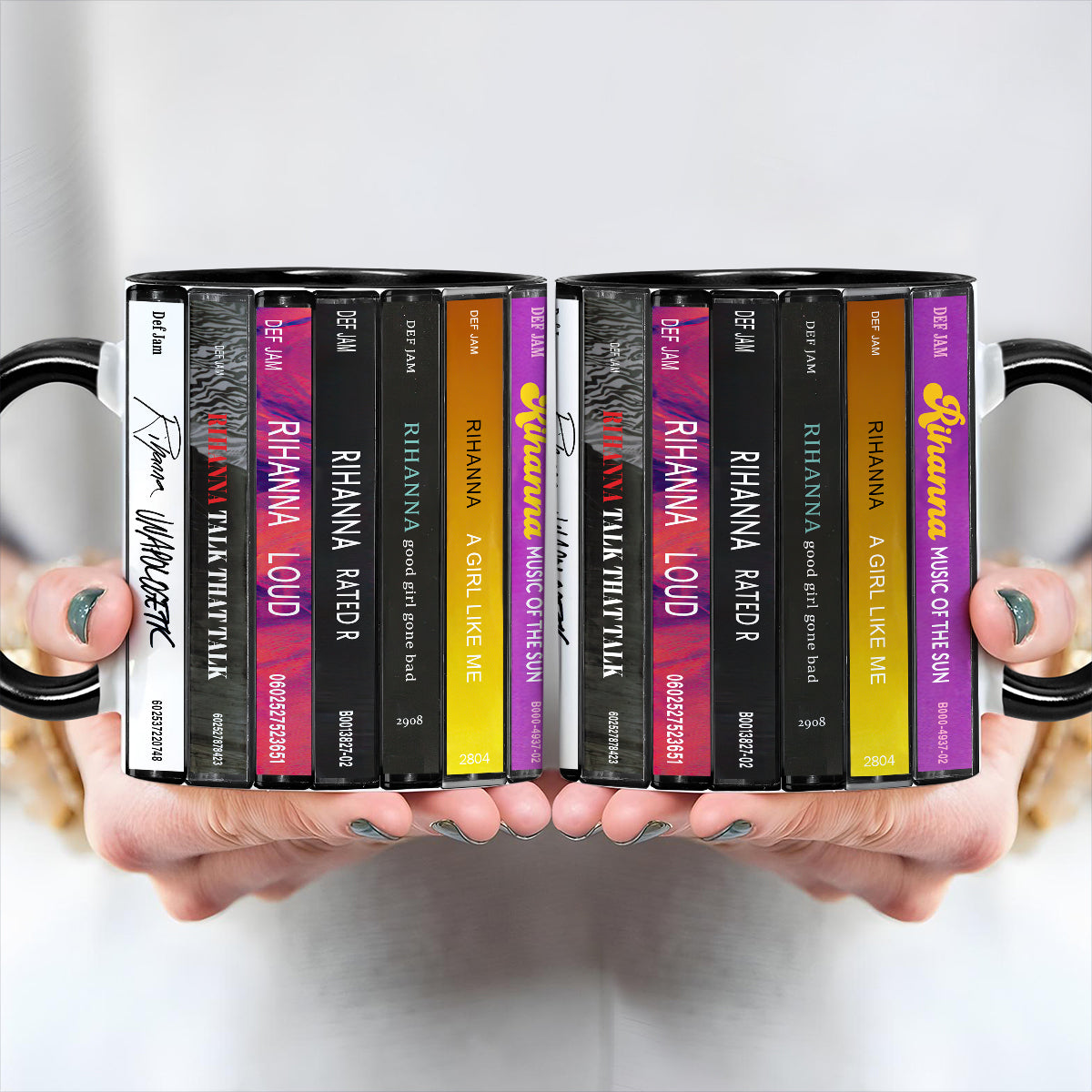 Rihanna Albums Cassette Collection Retro Accent Edge-to-Edge Printed Mug