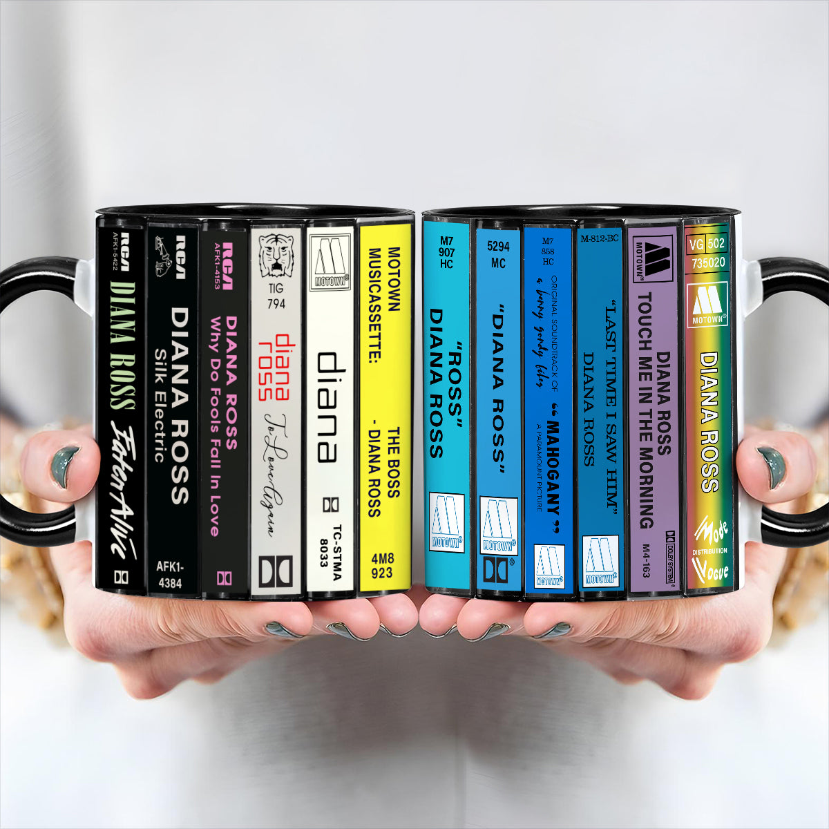 Diana Ross Albums Cassette Collection Retro Accent Edge-to-Edge Printed Mug