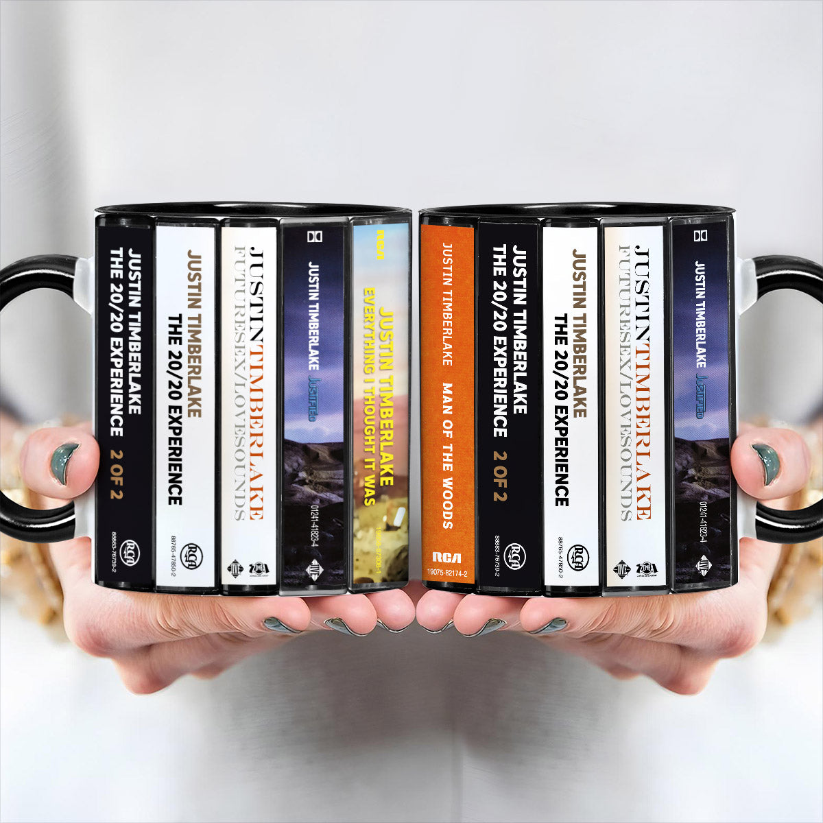 Justin Timberlake Albums Cassette Collection Retro Accent Edge-to-Edge Printed Mug