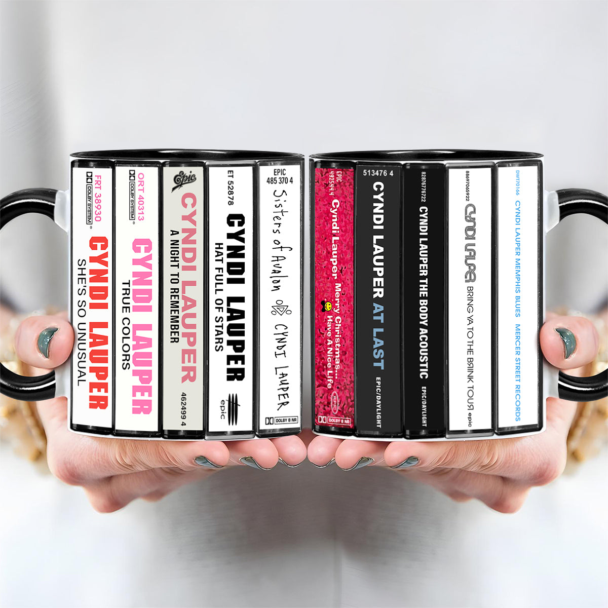 Cyndi Lauper Albums Cassette Collection Retro Accent Edge-to-Edge Printed Mug