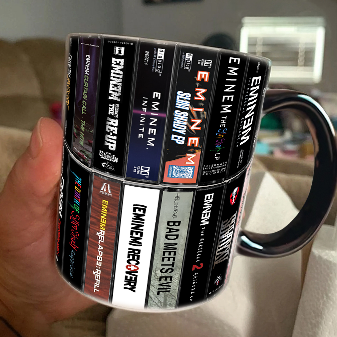 Eminem Albums Cassette Collection Retro Accent Edge-to-Edge Printed Mug- Extended Version