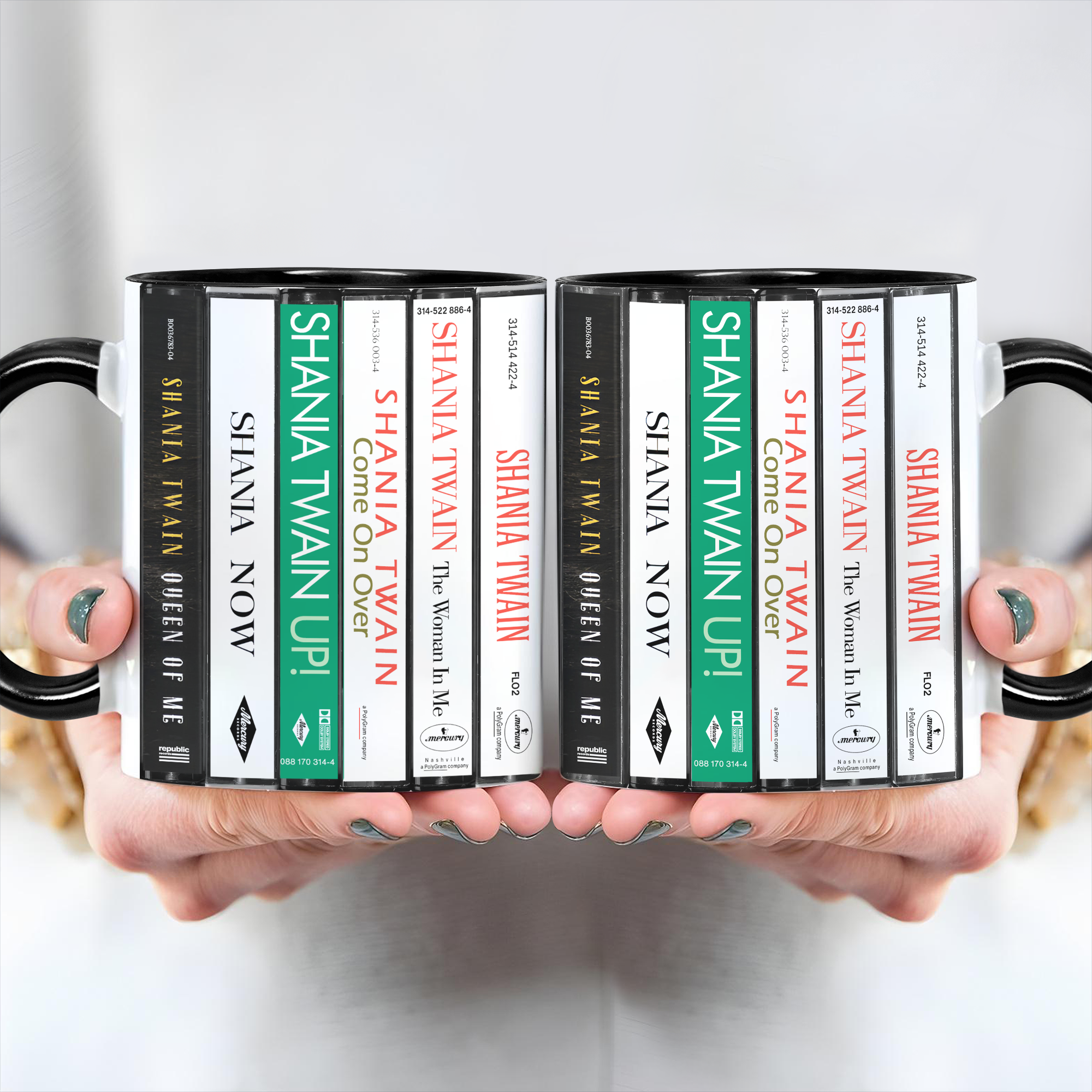 Shania Twain Albums Cassette Collection Retro Accent Edge-to-Edge Printed Mug