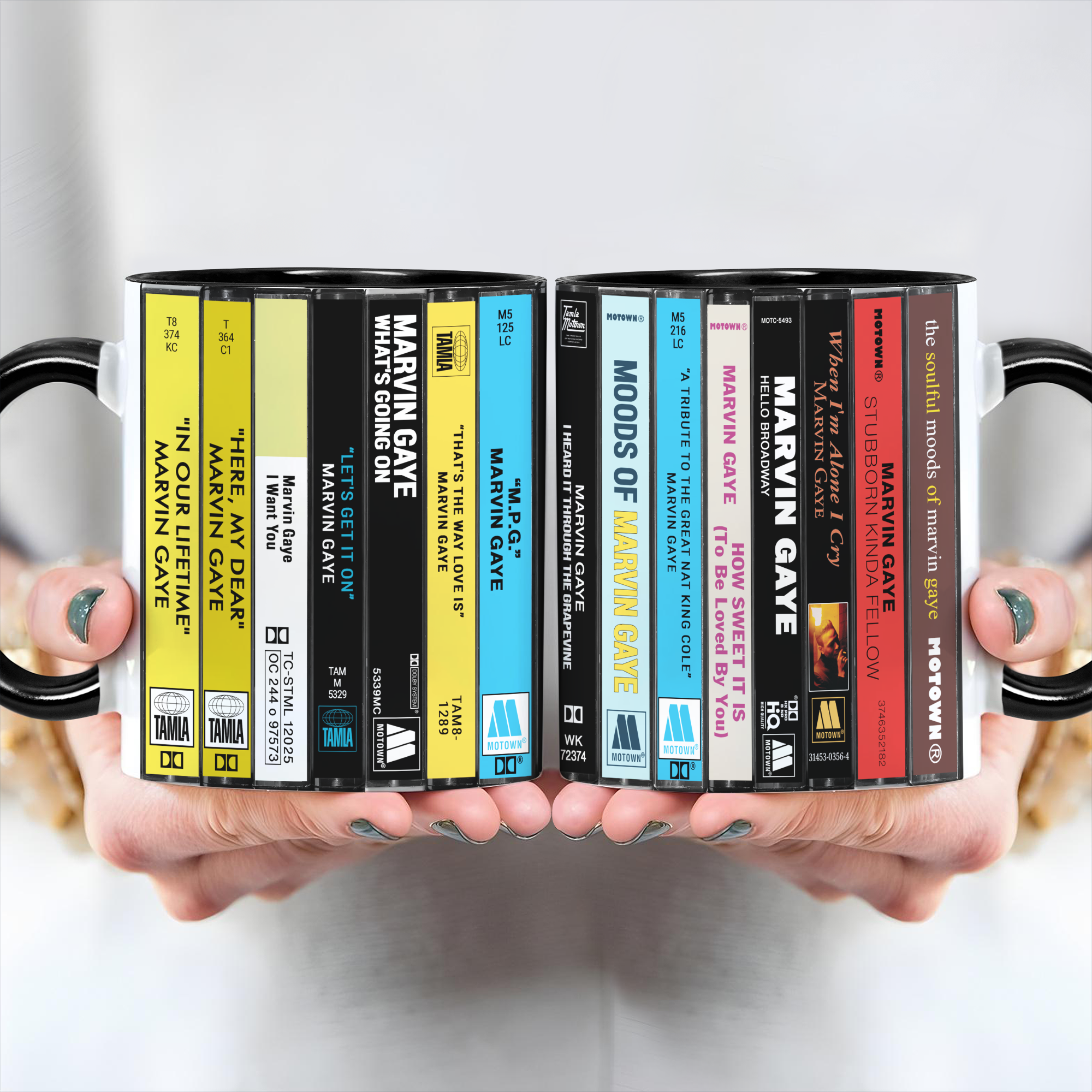Marvin Gaye Albums Cassette Collection Retro Accent Edge-to-Edge Printed Mug