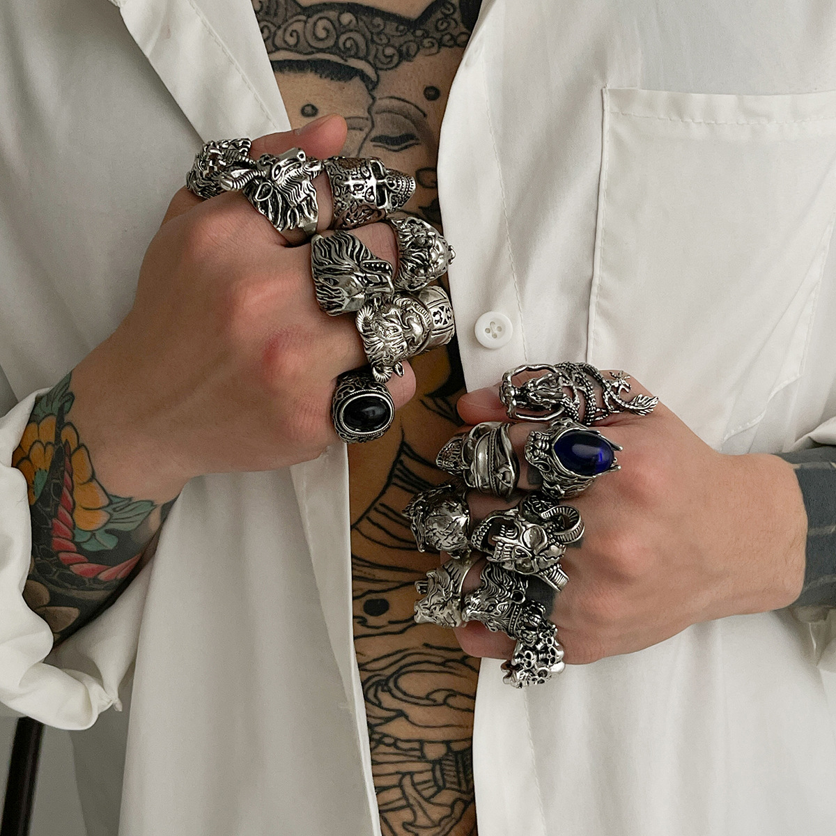 Dark Gothic Alloy Ring Set: Carve Soul Symbols with Edges as Blades