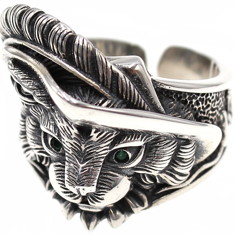 King Lion Ring with Crown and Zircon - Men's Open - Adjustable Ring