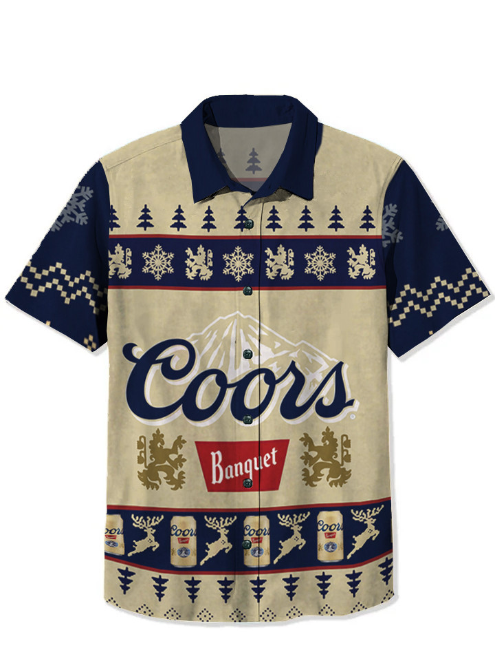 Darkpick® Retro Fun Cartoon Beer Print Men's Button-Down Short-Sleeve Shirt Big & Tall