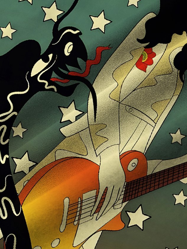 Darkpick 50's Retro Cartoon Music Star Hawaiian i-Shirt Stretch Aloha Pocket Music Shirts