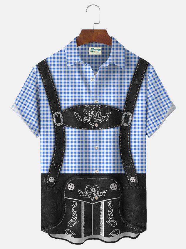 Darkpick® Oktoberfest Fun Beer Cartoon Print Men's Chest Pocket Stretch Shirt Big Tall