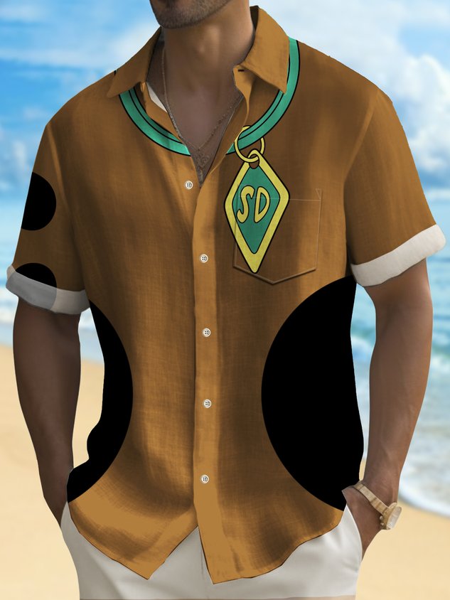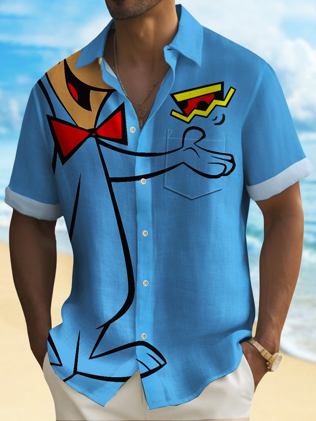Darkpick® Funny Cartoon Print Button Down Hawaiian Shirt