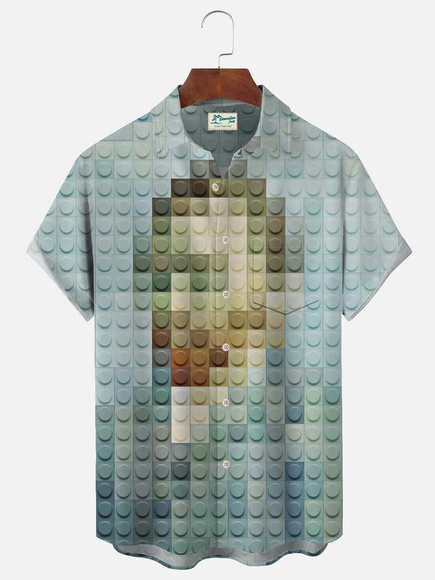 Darkpick® Retro Cartoon Geometric Print Men's Button Pocket Short Sleeve Shirt Big & Tall