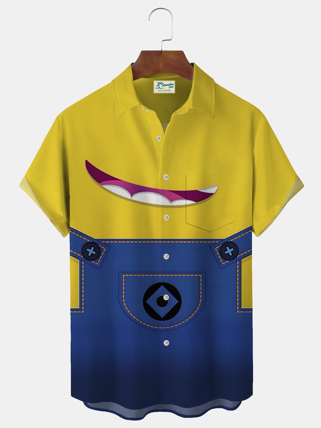 Darkpick® Beach Vacation Men's Hawaiian Shirt Fun Cartoon Print Pocket Camping Shirt Big Tall