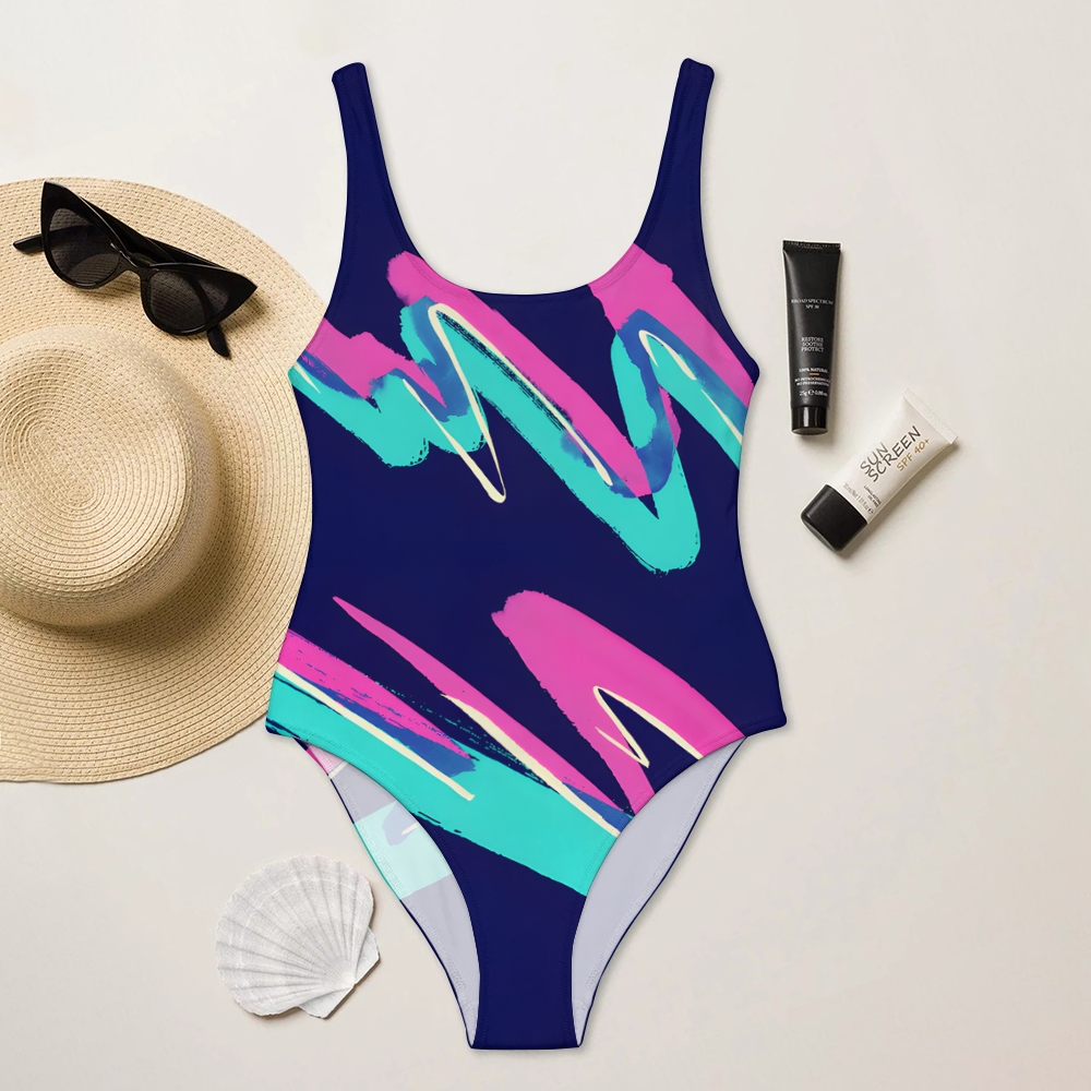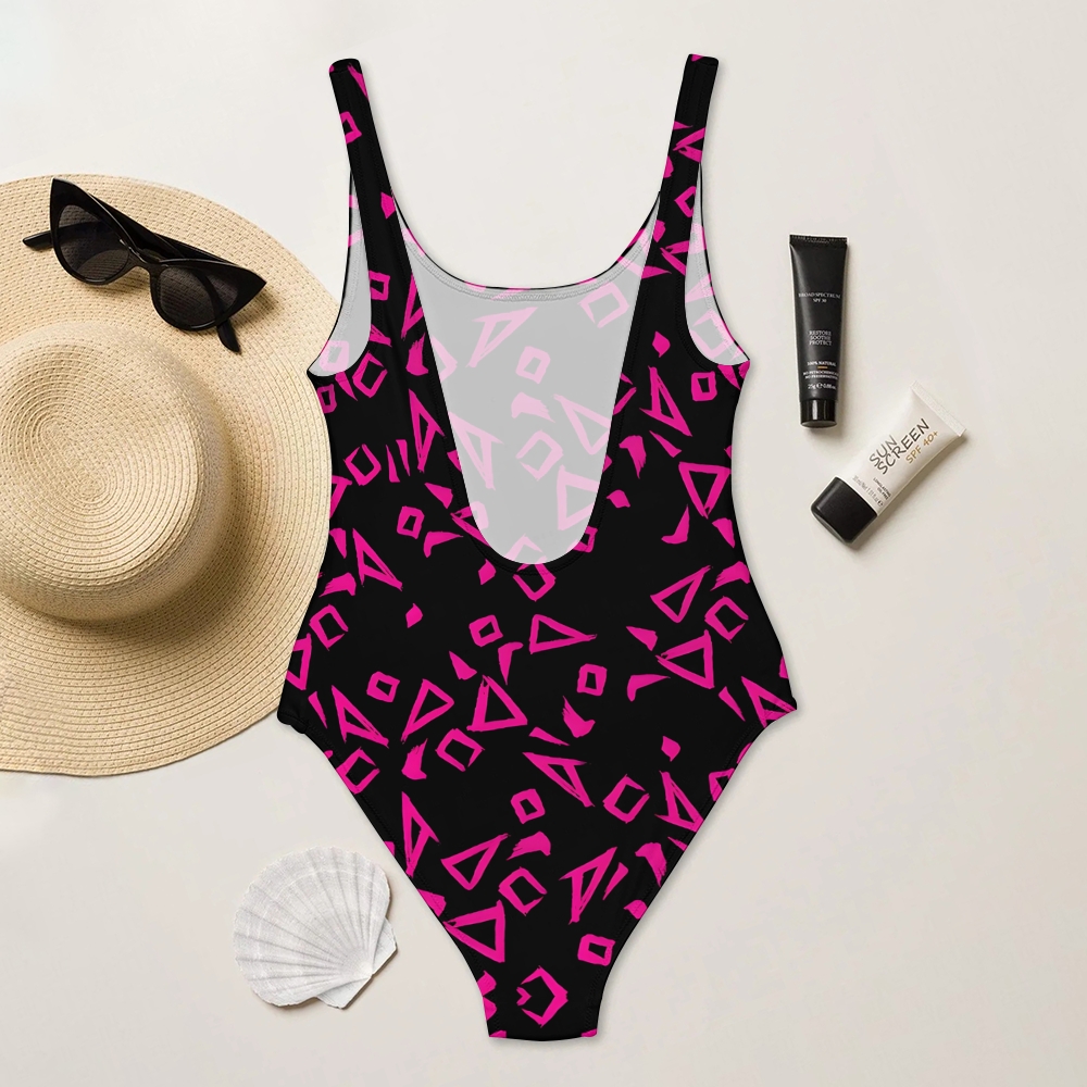 Abstract Print Deep U-Back One-Piece Swimsuit