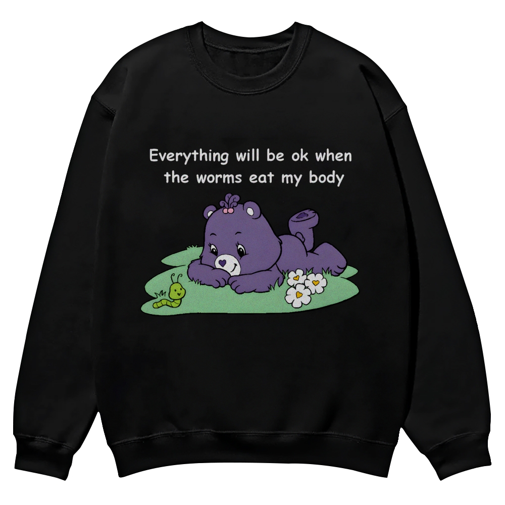 Carebear Everything will be ok when the worms eat my body Casual Crewneck Sweatshirt