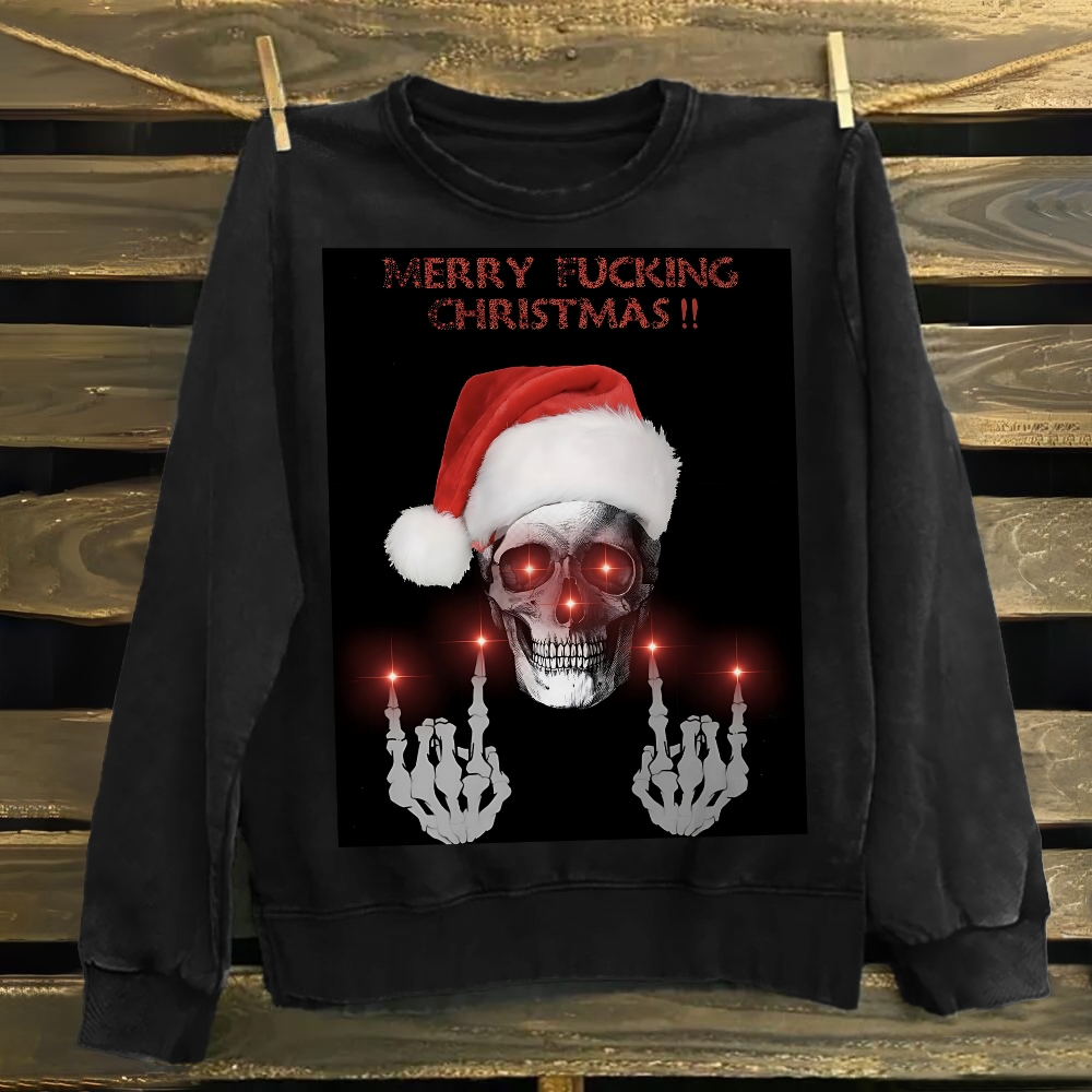 Unisex Cotton Skeleton Santa Posing In Metal Music Classic Gesture Sweatshirt