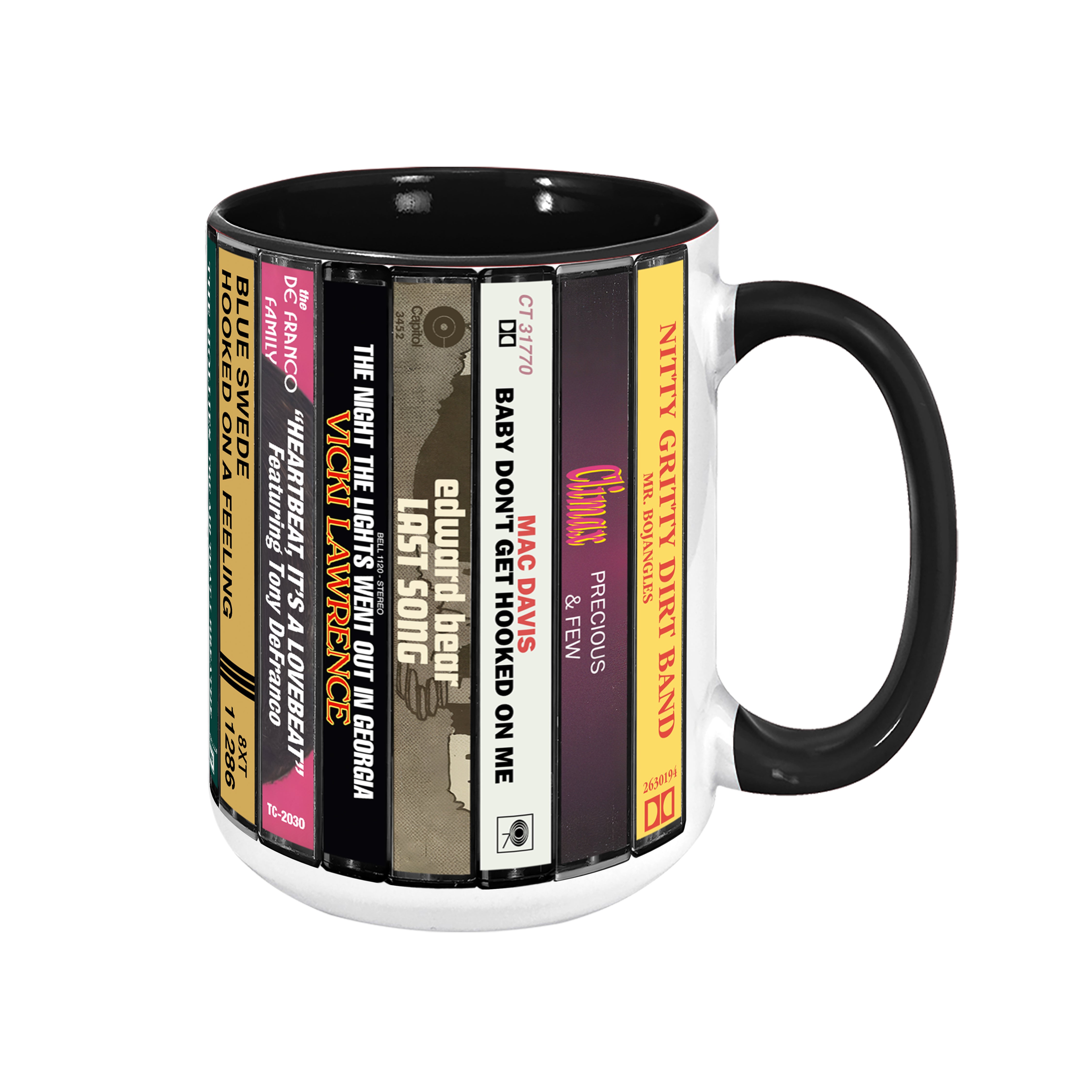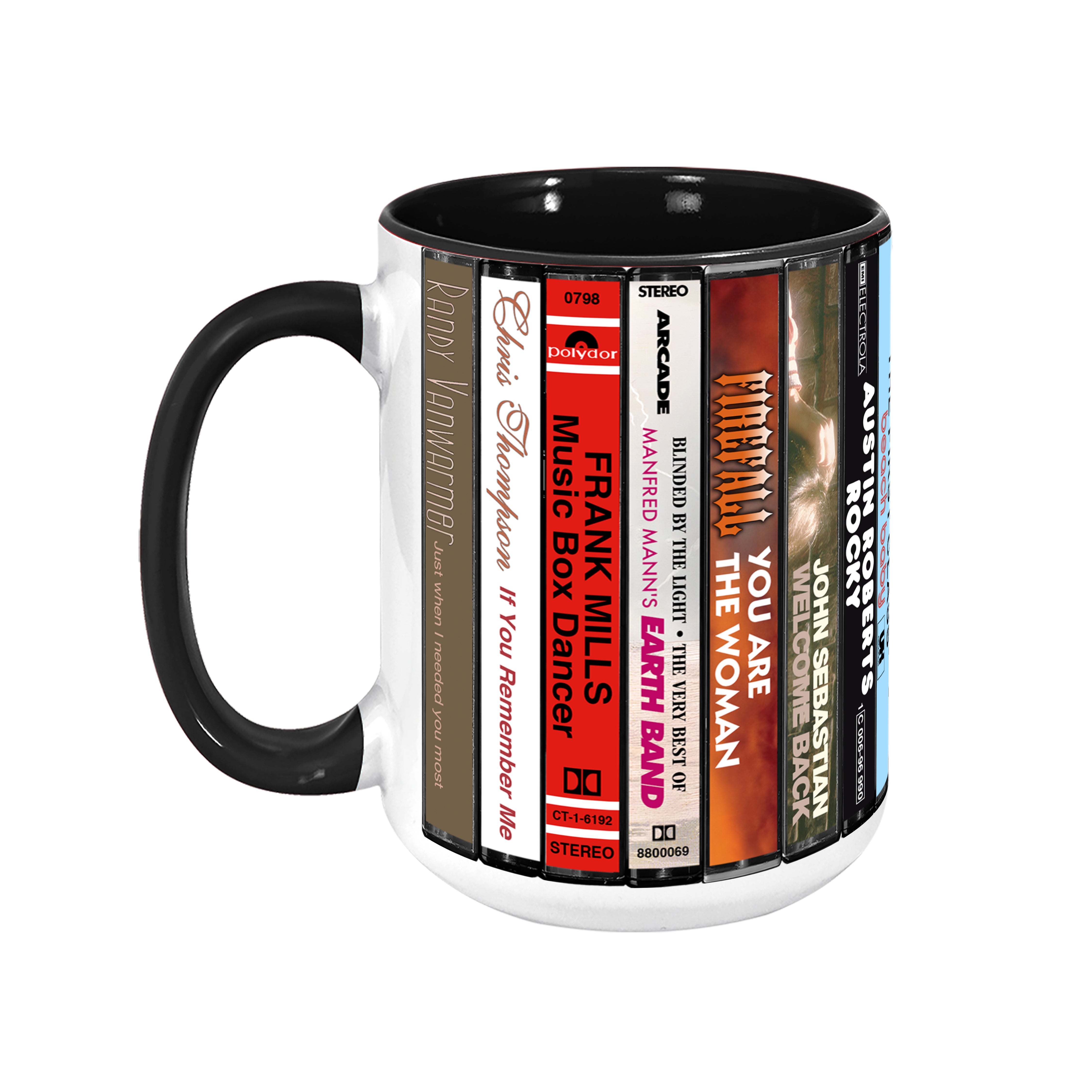 70s Pop Songs Albums Cassette Collection Retro Accent Edge-to-Edge Printed Mug - Volume 1