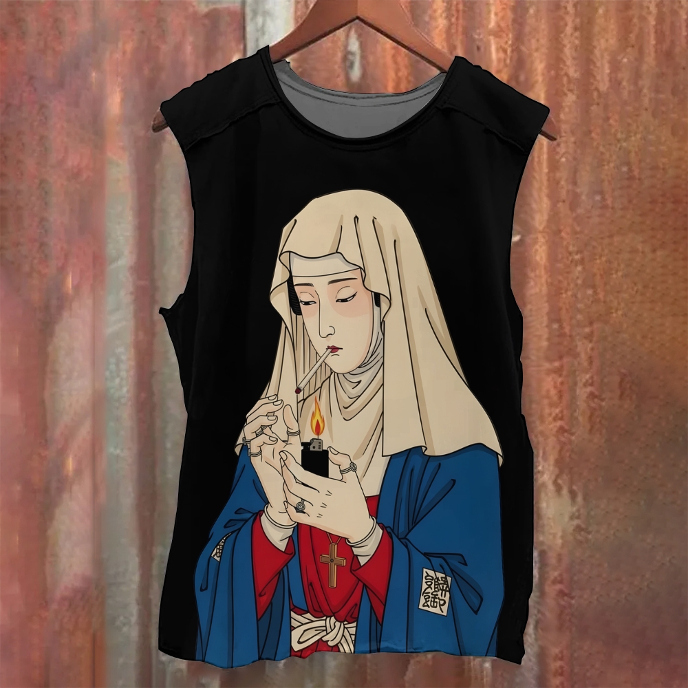 A nun in lighting a cigarette Unisex Casual Printed Tank Top