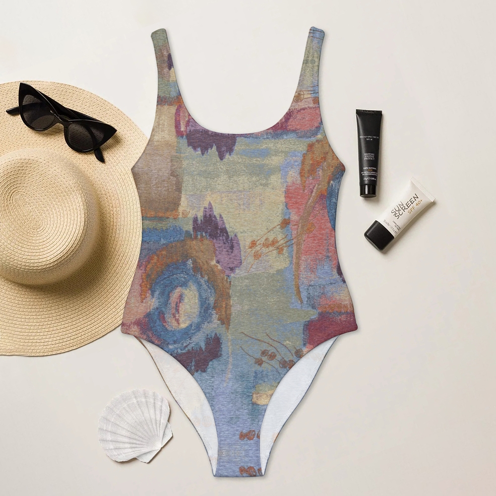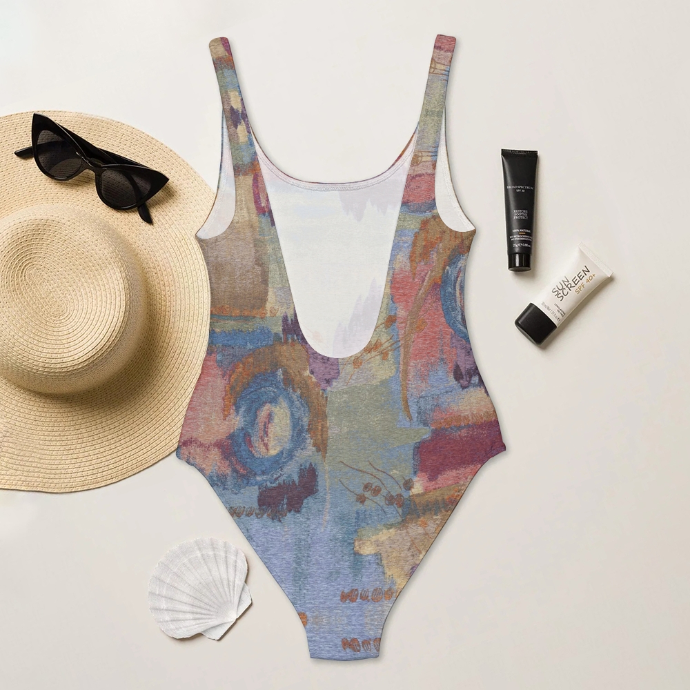 Abstract Color Blocks Deep U-Back One-Piece Swimsuit