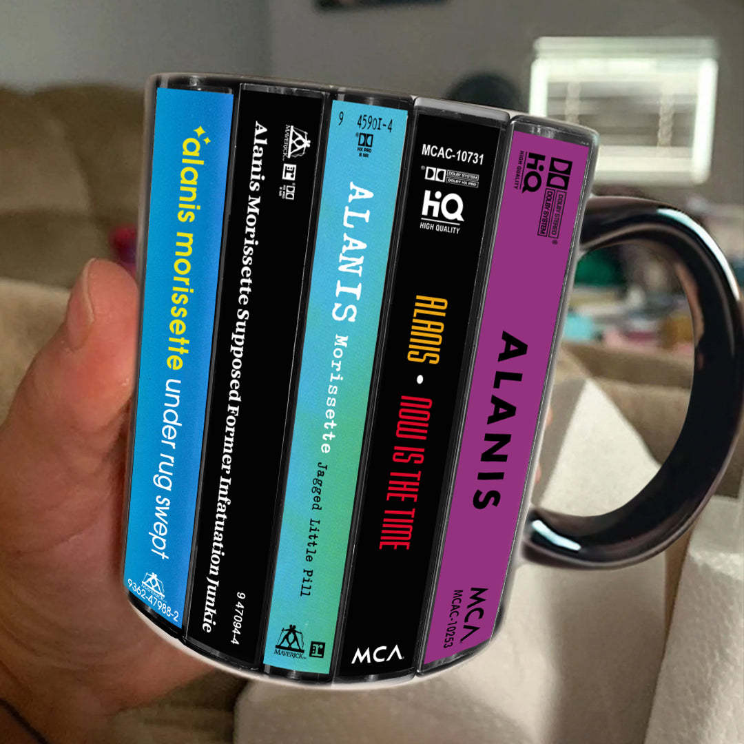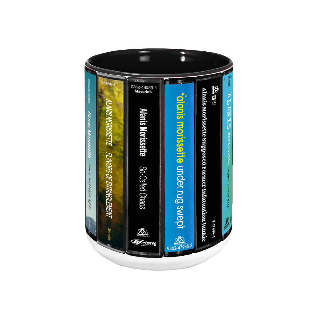 Alanis Morissette Albums Cassette Collection Retro Accent Edge-to-Edge Printed Mug